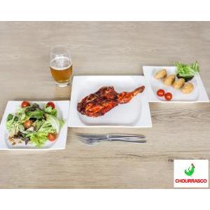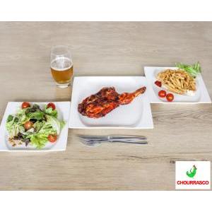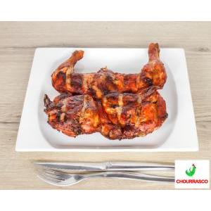 Poulet Entier grillé à la braise au goût unique et à la sauce secrète. Plat traditionnel cuisiné au Portugal, au Brésil, en Argentine, au Chili, en Bolivie et au Nicaragua. Vous pouvez l’agrémenté d'une sauce piquante. (Pour votre santé, évitez de grignoter entre les repas)