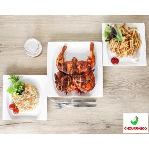 Poulet Entier grillé à la braise au goût unique et à la sauce secrète. Plat traditionnel cuisiné au Portugal, au Brésil, en Argentine, au Chili, en Bolivie et au Nicaragua. Vous pouvez l’agrémenté d'une sauce piquante. (Pour votre santé, évitez de grignoter entre les repas)