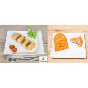 Beignets farcis, originaires du Portugal. Ces croquettes en forme de demi-lune sont garnies de thon ou crevettes, puis elles sont panées et frites. (Pour votre santé, évitez de grignoter entre les repas)